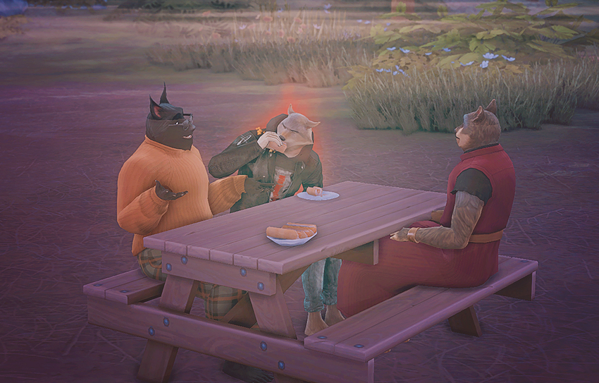 うっすらかかる靄のなか、群れのみんなと団らんして仲良くなろう。